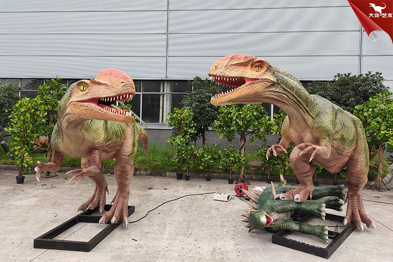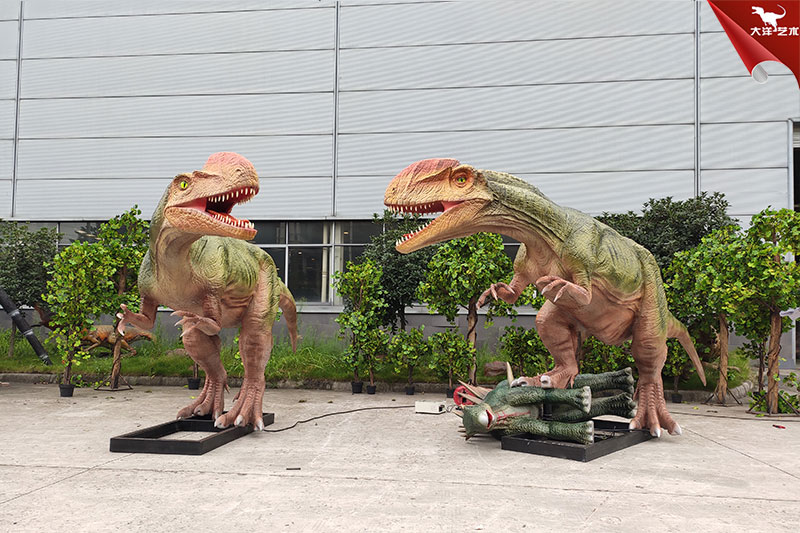雙脊龍捕食仿真恐龍模型