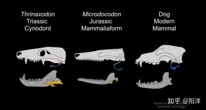 (下圖所示早期合弓綱到現(xiàn)代哺乳類的聽(tīng)骨進(jìn)化)